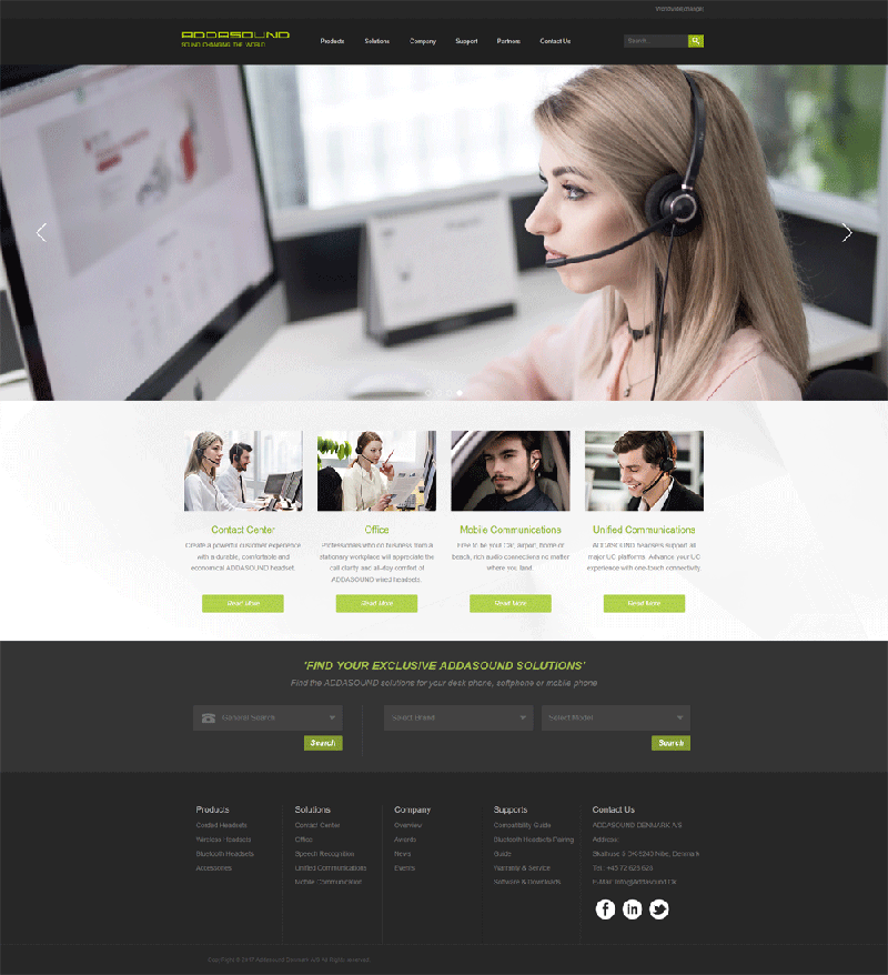 The product range spans from wired to wireless headsets. ADDASOUND headsets are deployed internationally in all major verticals such as healthcare, finance, insurance, education, government, transportation, energy and consumer segments.